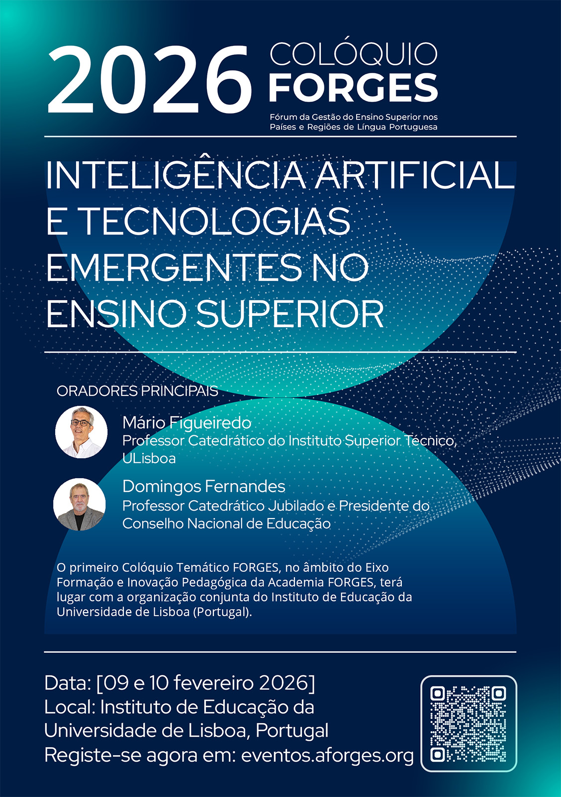 O primeiro Colóquio temático FORGES no âmbito do Eixo FORMAÇÃO E INOVAÇÃO PEDAGÓGICA da Academia FORGES realizar-se-á nos dias 09 e 10 fevereiro 2026, com organização conjunta do Instituto de Educação da Universidade de Lisboa, em Portugal.
